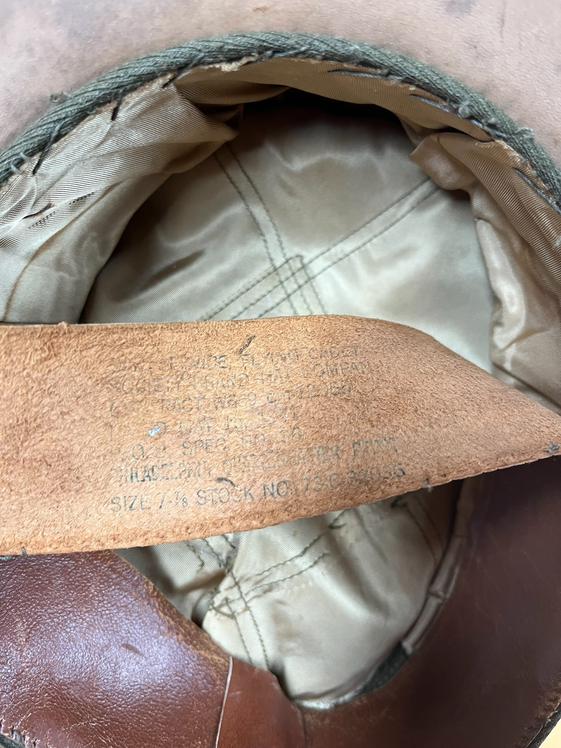 Casquette officier us type crusher taille 7 1/8, bandeau décousue à l’avant ainsi que l’avant de la visière.